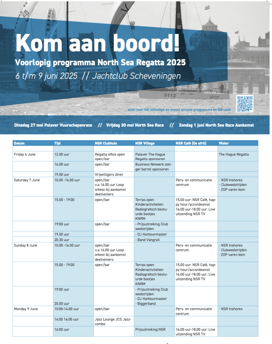 Wil je de sfeer van de North Sea Regatta proeven, maar zonder meteen de officiële wedstrijdbaan op te gaan? Jachtclub Scheveningen organiseert tijdens de NSR een aantal leuke en laagdrempelige wedstrijden voor iedereen die zin heeft in een sportieve dag op het water.